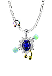 Materials: 925 Silver, steel, titanium and acrylic. Blue crystal and zirconias Measurements: All-around length 45 cm. Handcrafted in Spain. Every piece is unique. Colour may vary.
