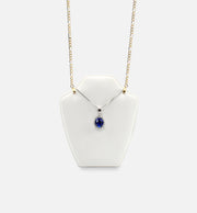 Gemstone: Blue oval cut zirconia 10 x 8 mm and 14 brilliant cut zirconia 2 mm. Measurements: All-around length 60 cm. Adjustable . Chain thickness 3 mm. Display: 9,7 x 8,5 cm. All our jewelry items are handcrafted in Spain, recovering traditional techniques that meet fine jewelry standards.