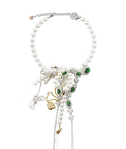 925 Silver, steel and metal, 18k plated brass, cristals, zircons and nacre pearls.