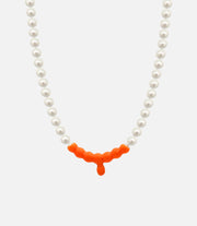 Materials: Nacre pearls, silver and orange vinyl. Measurements: All-around length 45 cm. Thickness 0,8 cm. Each piece is unique because it is handmade. All our jewelry items are handcrafted in Spain, recovering traditional techniques that meet fine jewelry standards.